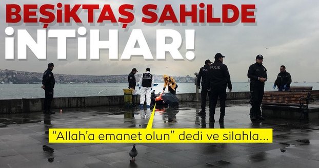Beşiktaş sahilinde bir kişi başına silahla ateş ederek intihar etti..Olay Beşiktaş Sahilindeki iskelenin yakınında saat 11.15 sıralarında meydana geldi. Görgü tanıklarının ifadesine göre telefonla konuştuğu kişiyle tartışan bir erkek telefonu kapattıktan sonra sahilden o anda geçmekte olan vatandaşlara "Allah'a emanet olun" dedi.