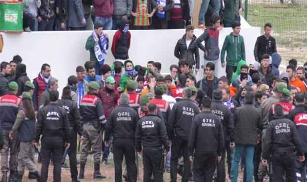 Antalya Süper Amatör Lig Doğu Grubu'nda Manavgat Belediyespor-Kestelspor maçının ardından sahaya inen taraftarları güvenlik güçleri havaya ateş ederek durdurdu.