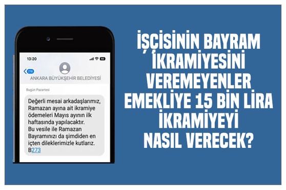 Muhalefetin adayı Kemal Kılıçdaroğlu, emeklilere 15 bin lira ikramiye vaadederken Ankara Büyükşehir Belediyesi, çalışanlarına ikramiye yatıramadı. Çalışanlar bayram ikramiyelerini mayıs ayında alacak.