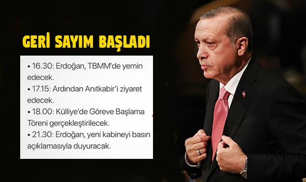 Erdoğan, saat 16.30'da TBMM Genel Kurulu'nda yemin edecek, ardından Anıtkabir'i ziyaret edecek.