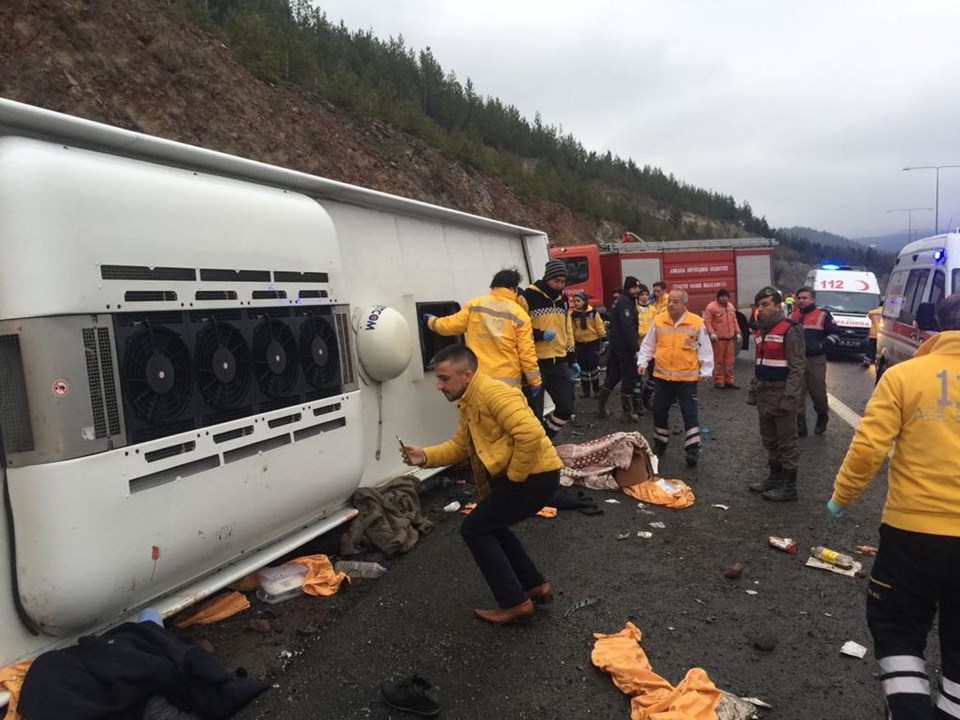 Anadolu Otoyolu'nun Ankara kesiminde yolcu otobüsünün devrilmesi sonucu iki kişi yaşamını yitirdi, 20 kişi yaralandı.