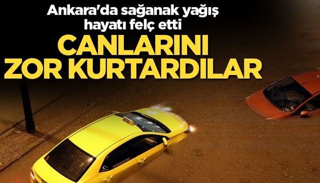 Başkent Ankara'da, akşam saatlerinde aniden başlayan sağanak yağış, hayatı felç etti. Alt geçitler su içinde kalırken bazı arabalar sulara gömüldü.