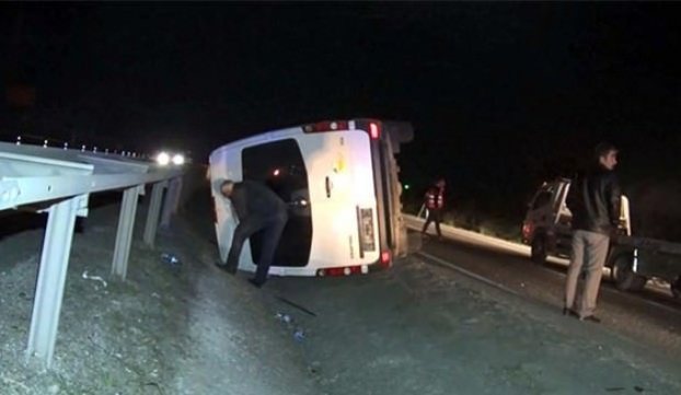Kaza, saat 02.30 sularında Ankara’nın Polatlı ilçesi Üçpınar mevkisinde meydana geldi. Osman Uzun (53) yönetimindeki 06 ZT 961 plakalı minibüs, Polatlı’dan Eskişehiristikametinde seyir halinde ilerlerken bölünmüş yolun 19-20’nci kilometreleri arasında sürücüsünün direksiyon hakimiyetini kaybetmesi sonucu yan devrildi. Orta refüjde bulunan su kanalına devrilen minibüsteki 4 yolcu yaralanırken sürücü ise kazayı yara almadan atlattı. İhbar üzerine olay yerine polis ve 112 sağlık ekipleri sevk edildi.
