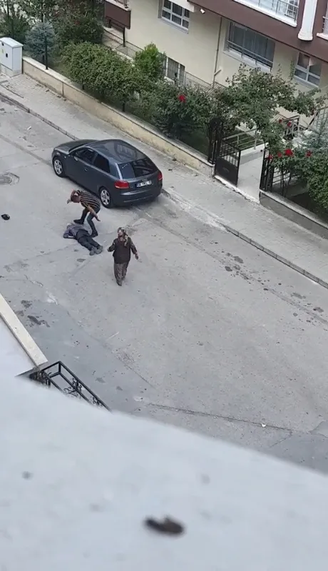 Ankara'nın Mamak ilçesinde şoke eden görüntüler! Yusuf Ş. (33), annesine sözlü tacizde bulunduğunu iddia ettiği Ramazan D.'yi (60) sokak ortasında dakikalarca başını tekmeleyerek, ağır yaraladı. Olay, bir vatandaş tarafından cep telefonu kamerasıyla görüntülendi.