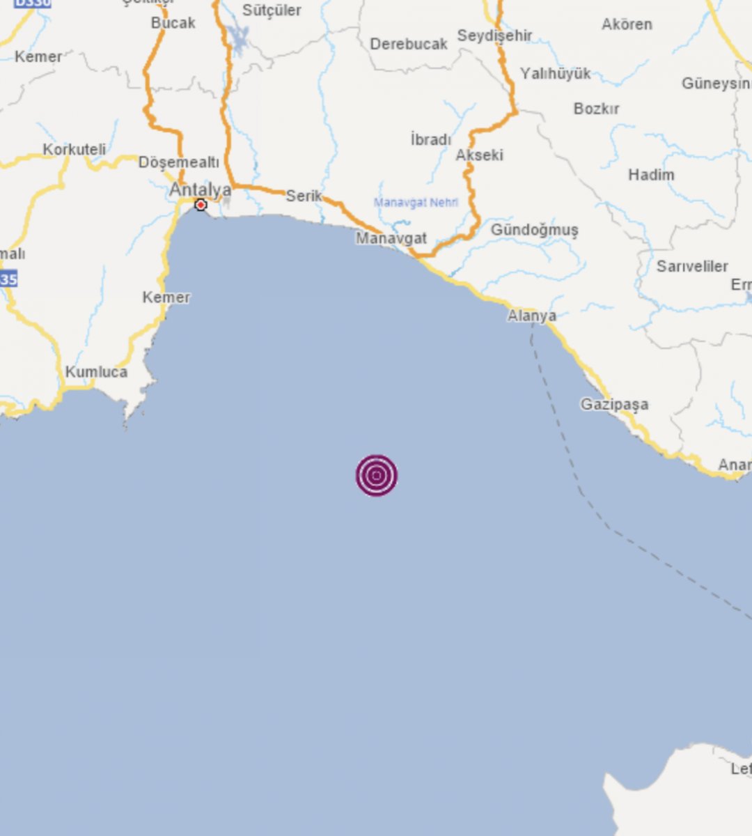 AFAD'ın verdiği bilgiye göre; merkez üssü Antalya'nın Alanya ilçesi açıkları olan, saat 05:05 sıralarında 4.1 büyüklüğünde bir sarsıntı meydana geldi.