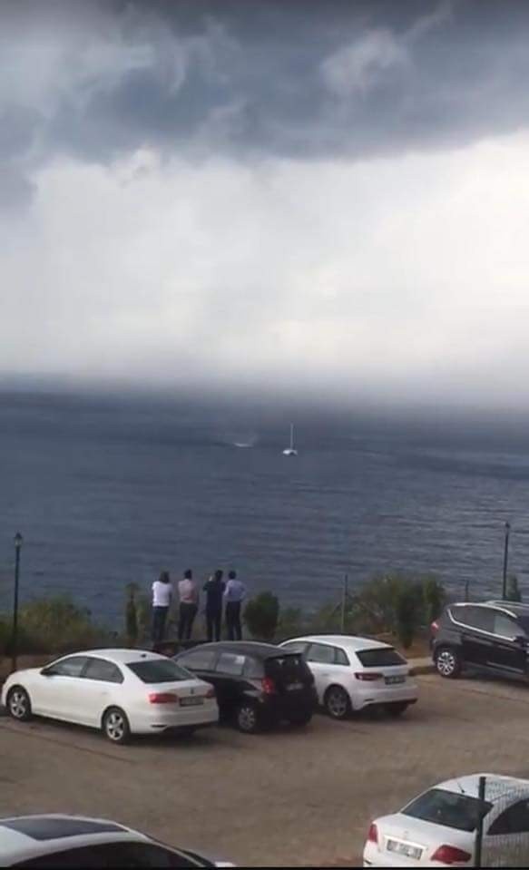 Karadan yaklaşık 2 kilometre uzaklıkta çıkan hortum, o sırada seyir halindeki yelkenli bir yatın hemen yanından geçti.