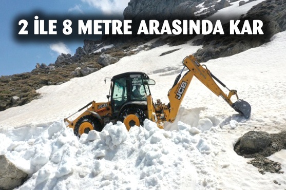 Antalya'nın Gazipaşa ilçesinde kar kalınlığı 2 ila 8 metreyi bulan yayla yollarında, belediye tarafından yol açma çalışması başlatıldı.