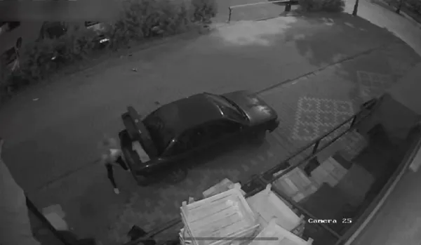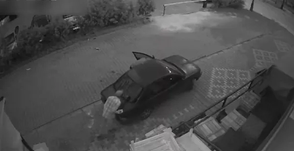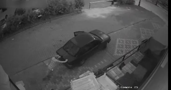 Arabaya binip, kontağı çeviren hırsızlar arabayı çalıştıramadı. Aşağıya inen hırsızlar bir süre aracı itekledi. Hırsızlar, çalıştırdıkları araçla olay yerinden kaçtı. Komedi filmlerin aratmayan bu anlak güvenlik kameralarınca saniye saniye kaydedildi.