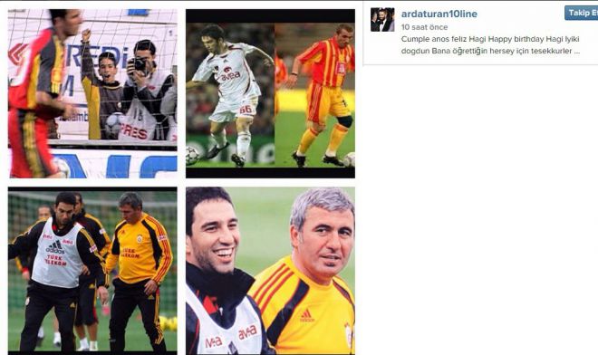 Arda Turan, Galatasaray'ın UEFA Kupası'nı kazandığı efsane kadrosunda yer alan eski Rumen futbolcu Gheorghe Hagi'yi unutmadı. Sarı-kırmızılı takımda forma giydiği bir dönem, teknik direktör Hagi ile çalışan Arda, efsanenin doğum gününü sosyal medya üzerinden kutladı. Hagi ile fotoğraflarından bir kolaj yapan yıldız futbolcu, "Hagi, iyi ki doğdun. Bana öğrettiğin her şey için teşekkürler" ifadelerini paylaştı.