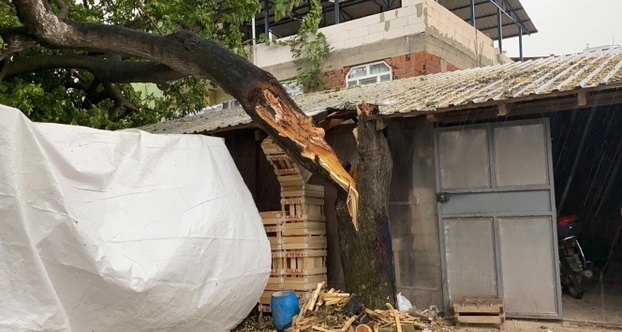 Aşırı yağış ve fırtına 50 yıllık ağacı devirdi