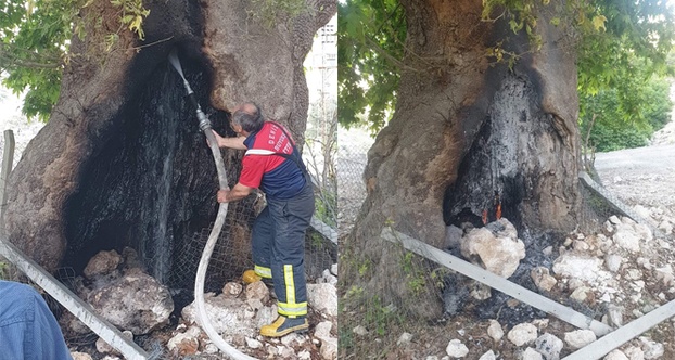 Asırların deviremediği çınarı ateşe verdiler
