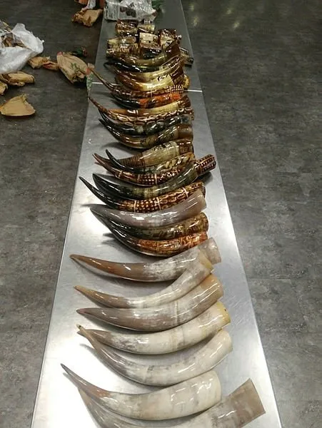 Ticaret Bakanlığı Gümrük Muhafaza ekiplerince Atatürk Havalimanı'nda gerçekleştirilen operasyonda piyasa değeri yaklaşık 900 bin TL olan yüzlerce manda boynuzu ve bunlardan üretilmiş süs eşyaları ele geçirildi.