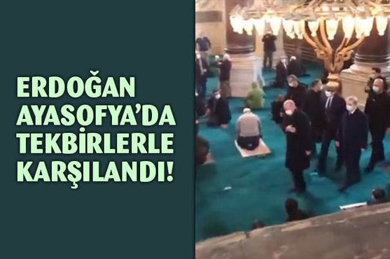 Cuma namazı için Ayasofya Camii'ne giren Cumhurbaşkanı Erdoğan tekbir sesleriyle karşılandı.