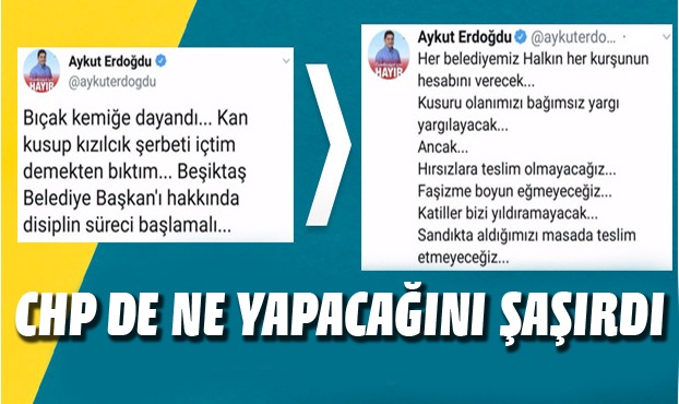 CHP'li vekil Aykut Erdoğdu, geçtiğimiz yıl Beşiktaş Belediye Başkanı Murat Hazinedar'ın görevden el çektirilmesini isterken, bugün tam da aksini savunuyor.