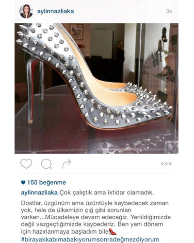 Aylin Nazlıaka, CHP'nin Ankara 1. Bölge adayı olarak yeniden Meclis'e girdi. Seçim sonuçlarının açıklanmasının ardından CHP'li Aylin Nazlıaka demir topuklu ayakkabı fotoğrafıyla, "Ben yeni dönem için hazırlanmaya başladım bile" mesajını paylaştı.