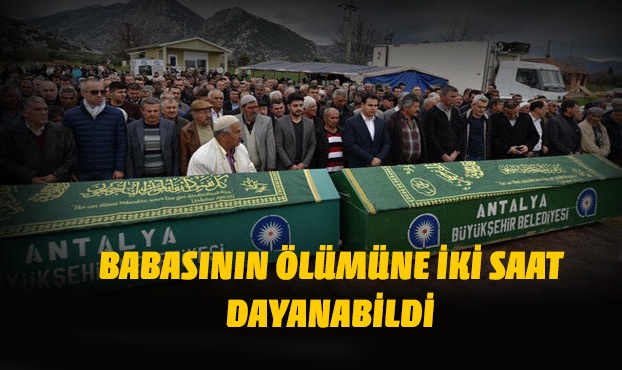 Antalya'da, Ahmet Özkan (91), yaşlılığa bağlı hastalığından dolayı evinde yaşamını yitirdi. Babasının acısına dayanamayan Erhan Özkan (52) da yaklaşık 2 saat sonra kalp krizi geçirerek öldü. Baba ve oğul, bugün yan yana toprağa verildi.