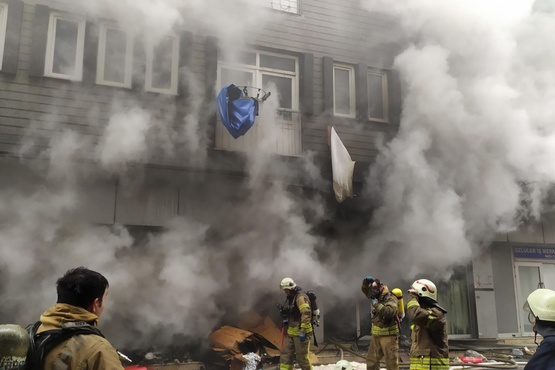 İş yerindeki yoğun duman nedeniyle çalıştığı yerden hızla uzaklaşan Rabia Dinç, “Öğle paydosuydu işbaşı yaptık, o ara camdan gördüm klimaların dumanı zannettim. Yazıhaneye gittim içeride dumanlar vardı. Camdan bakınca dumanları görünce herkes yangın düğmesine bastı, daha sonra aşağıya indi. Kumaş deposunda çıktı, çok şükür kimseye bir şey olmadı” dedi.