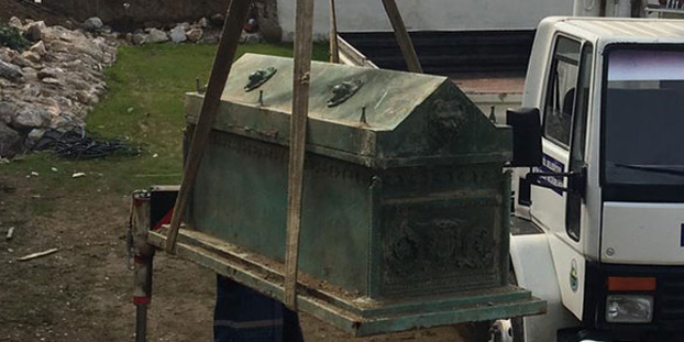 Bursa'nın İnegöl ilçesinde jandarmanın bir eve düzenlenen kaçak kazı operasyonunda Roma dönemine ait 500 kilo ağırlığında bronz lahit ele geçirildi.