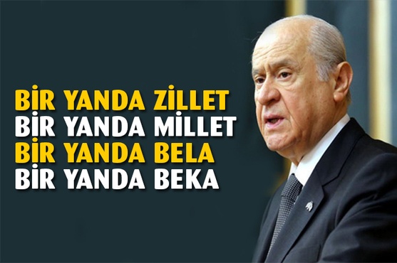 MHP Genel Başkanı Devlet Bahçeli "Bir yanda zillet, diğer yanda millet. Bir yanda bela, diğer yanda beka. Türkiye'yi teslim alamayacaklar." dedi.