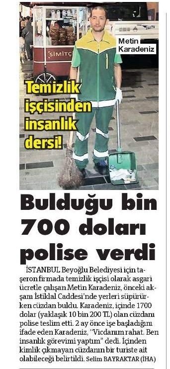 Seçildiği günden bu yana binlerce kişiyi işinden eden CHP'li İBB Başkanı Ekrem İmamoğlu, yaptığı açıklamada "onlar iki seçim arasında alınan işçiler" diyerek işten çıkarmalara kılıf uydurmuştu. Ancak daha sonra yapılan araştırmada bu açıklamanın gerçekleri yansıtmadığı ortaya çıktı. Bu işçilerden biri de Beyoğlu’nda bulduğu bin 700 doları emniyet yetkililerine teslim eden temizlik işçisi Metin Karadeniz!