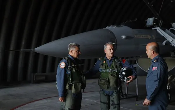 Uçuş teçhizatlarını kuşanan Akar, önce uçak başına, buradaki son kontrollerin tamamlanmasının ardından ise F-16'nın kokpitine geçti.