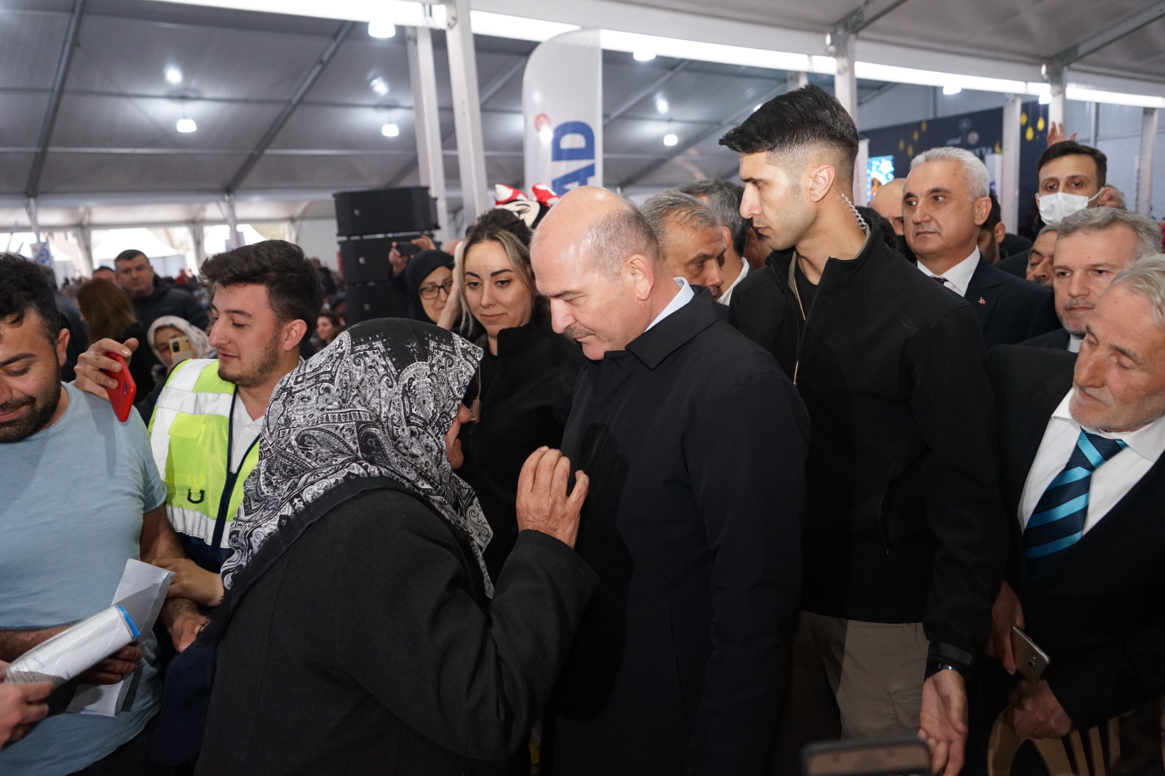 "Biz bu ilçeyi şantiyeyi çevirdik. Doğrudan kıymetli Cumhurbaşkanımız Recep Tayyip Erdoğan'ın bizzat talimatı, takibiyle çalışma yaptık" diyerek vatandaşlara Cumhurbaşkanı Erdoğan'ın selamlarını ileten Soylu, "Sayın Tarım ve Orman Bakanımız, Çevre, Şehircilik ve İklim Değişikliği Bakanımız, Sayın Ulaştırma Bakanımız, Sayın Sağlık Bakanımız, bakan yardımcılarımız, dışarıdan belli bölgelerde görevlendirdiğimiz valilerimiz, tüm mesai arkadaşlarımız, AFAD Başkanlığımızın koordinesinde çok büyük bir yönetim gösterdiler. Bunu hep birlikte sağladık. Bize tahammül ettiniz. Zorlukları aşmakta bize yardımcı oldunuz. Hep beraber el ele verdik, buradaki bu karşı karşıya kaldığımız sel felaketinden en az seviyede etkilenerek çıkmak için birlikte gayret gösterdik. Sabrınıza, gösterdiğiniz tahammüle minnettarız. Ortaya koyduğunuz el birliğine minnettarız" diye konuştu.
