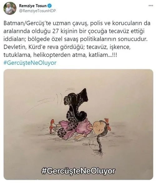 HDP Kadın kolları ve HDP'li Milletvekilleri, partiye ait HDP Kadın isimli Twitter hesabından, "Kolluk eliyle gerçekleşen tecavüzlerden biri bu kez Gercüş'te yaşandı. Bir çocuğun, aralarında uzman çavuş ve polislerin de olduğu kişiler tarafından tecavüze maruz bırakıldığı ortaya çıktı. Ancak iktidarın yargısı yine failleri aklama çabasında! Soruyoruz?" şeklinde hiçbir somut gerçekliğe dayanmayan, iftira içerikli bir paylaşım gerçekleştirdi. Paylaşımdan kısa süre sonra Batman Valiliği bir açıklama yayınladı. Açıklamada, iddiaların asılsız olduğu kesin bir dille bildirildi.