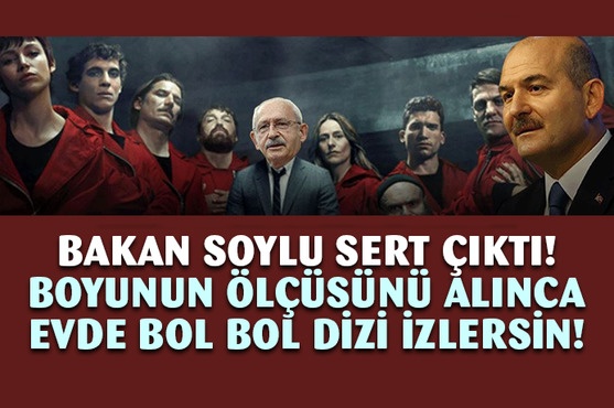 İçişleri Bakanı Süleyman Soylu, sosyal medya hesabından yaptığı paylaşımla, dizi fragmanı üzerinden erken seçim göndermesinde bulunan CHP Genel Başkanı Kemal Kılıçdaroğlu'na yanıt verdi. Soylu, "Merak etme Kemal Kılıçdaroğlu, daha önce 10 defa olduğu gibi 2023’te de, boyunun ölçüsünü aldığında, evinde bol bol dizi izlersin" ifadelerini kullandı.
