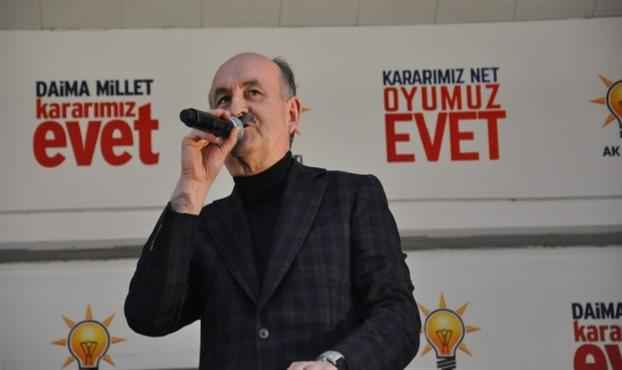 Çalışma ve Sosyal Güvenlik Bakanı Mehmet Müezzinoğlu, bu ülkeye muasır medeniyet seviyesinin üzerine çıkmanın yakıştığını belirterek, “Hep daha mükemmelinin peşinde koştuk. Bu anlamda Bursa hep yanımızda oldu, biz de hep beraber Bursa ile olduk. Bursa’nın her alanda gelişmesine, her alanda daha ileriye gitmesinin yanında olduk. Otobanın yeni bölümünü açtık. Bursa artık İstanbul’a bir saatlik mesafede oldu. Şehir hastanemiz hızla ilerliyor. Ali Osman Sönmez Devlet Hastanesi’nin temelini attık. Bursa sağlık turizminde de hak ettiği yeri alacaktır. Bursa aynı zamanda termal turizmin merkezi olacaktır. Bursa AK Parti iktidarlarına teşekkür ediyor. Oy oranını yükselterek geliyor. 1 Kasım seçimlerinde Bursa yüzde 54’ün üzerinde oy oranıyla AK Parti’ye en güçlü desteği verdi. Referandumda da en güçlü desteği de verecektir” diye konuştu.
