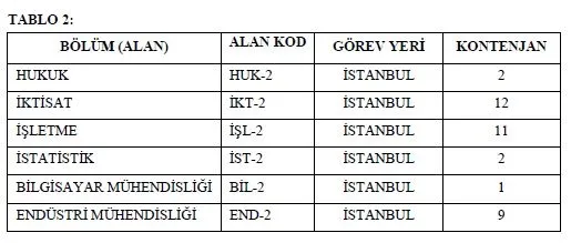 a) TABLO 1'de görev yeri Ankara olan alanlar, TABLO 2'de ise görev yeri İstanbul olan alanlar gösterilmiştir. Adaylar, TABLO 1 veya TABLO 2'de yer verilen alanlardan sadece bir tanesini, alan kodunu belirtmek suretiyle tercih edebilecektir.