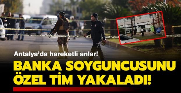Antalya'da bir bankaya soygun amacıyla giren kişi çalışanları dışarı çıkartıp güvenlik görevlisini rehin aldı. Olay yerine polis ekipleri sevk edildi. Zanlı, ikna edilerek gözaltına alındı.
