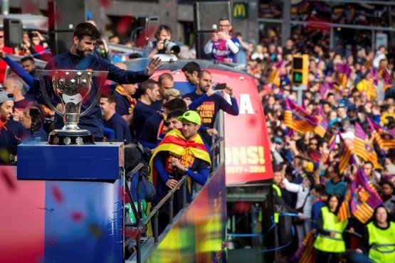 Dün gece deplasmanda Deportivo La Coruna ile karşılaşan Barcelona rakibini 4-2 mağlup ederek bitime 3 hafta kala La Liga'da şampiyonluğunu ilan etti. İspanyol ekibi bugün taraftarlarıyla birlikte şampiyonluğunu kutladı. Barcelona’nın ana caddesinde üstü açık otobüsle şampiyonluk turu atan Katalan ekibine taraftarlar coşkuyla eşlik etti.