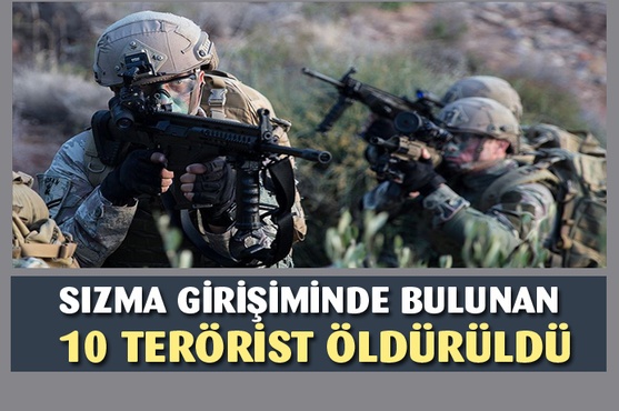 Barış Pınarı ve Zeytin Dalı bölgelerine sızma ve saldırı girişiminde bulunan 10 teröristin, komandolar tarafından etkisiz hale getirildiği bildirilen açıklamada, teröristle mücadelenin etkin ve kararlı şekilde süreceği kaydedildi.