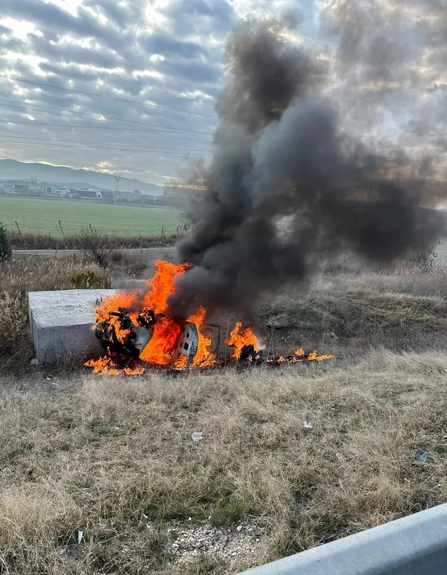 Sürücüsünün kontrolünü kaybettiği otomobil, bariyerlere çarpıp, şarampole yuvarlanarak alev aldı. Çevredeki sürücülerin ihbarı üzerine kaza yerine sağlık ve itfaiye ekipleri sevk edildi.