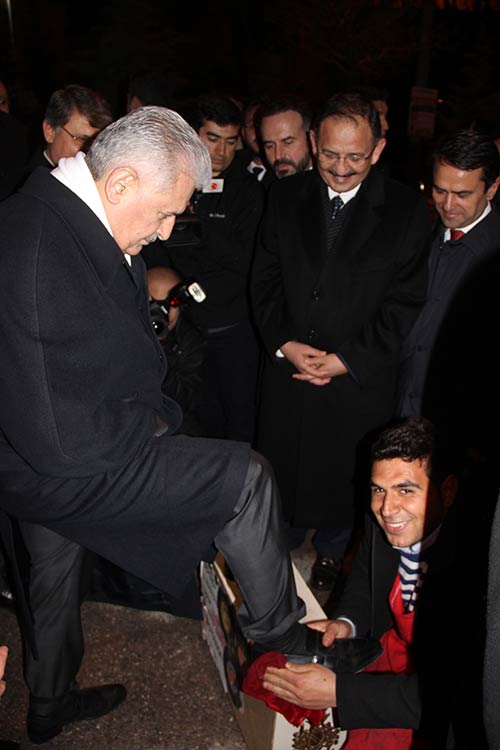 Başbakan Binali Yıldırım, Nevşehir mitinginin ardından Nevşehir Valiliğini ziyaret etti. Ziyaretin ardından ‘Ayakkabınızı boyayım’ diyen ayakkabı boyacısının isteğini kırmayan Başbakan Binali Yıldırım,ayakkabısını boyatmak üzere boyacının yanına geldi. Bu sırada boya sandığının üzerine ayakkabısını koyan Başbakan Binali Yıldırım’a ayakkabı boyacısı, "Önce bir fırça çekeyim Başbakanım" dedi. Bunun üzerine Başbakan Yıldırım, "Ayakkabıya çek fırçayı. Bak görüyor musun? Vatandaş fırçada çekiyor. Her şeyi yapar" demesi çevredekileri güldürdü.