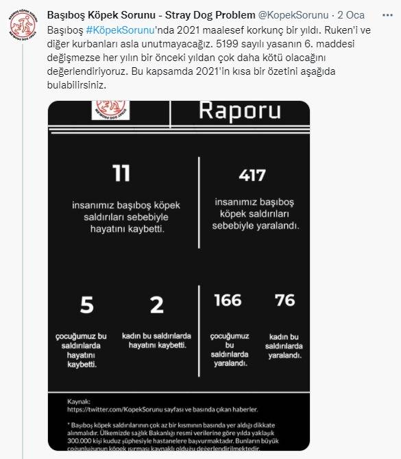 Başıboş Köpek Sorunu Platformu 2021 yılında başıboş köpeklerden kaynaklanan saldırılara ve trafik kazalarına ilişkin rapor yayınladı.