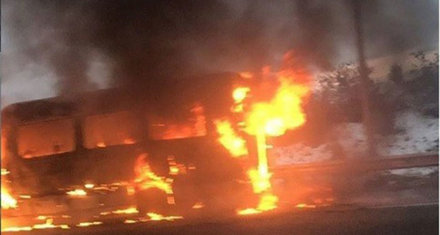 Ankara kuzey çevre yolunda bir servis minibüsü alev aldı.