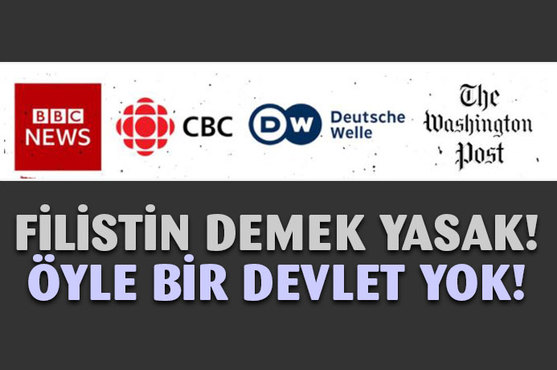Dünyaca ünlü yayın kuruluşları çalışanlarına "Filistin diye bir devlet yok, 'Filistin ve Filistin devleti' tabirini kullanmayın" şeklinde brifing verirken, CBC ise "Filistin haritası göstermeyin" talimatı verdi.