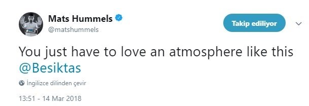 Bayern Münih'i yıldız oyuncusu Hummels Beşiktaşlı taraftarları övdü.