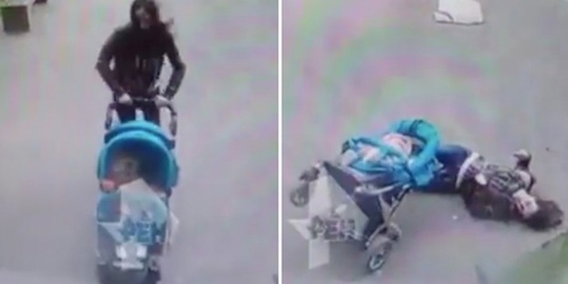 Rusya'nın St. Petersburg kentinde bebek arabasıyla çocuğunu gezdiren bir annenin başına, nereden geldiği belli olmayan bir beton parçası düştü. Ağır yaralanan anne hastanede ölümle pençeleşirken, bebeğin mucize eseri kurtulduğu o anlar binanın güvenlik kamerasına işte böyle yansıdı.