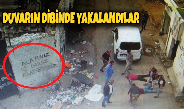 Öte yandan zehir tacirleri, bölgede bulunan duvarların üzerine ‘Alayınız gelse alay ederiz' yazıp, televizyonda yayınlanan bir dizinin figürünü çizdiler. Narkotik polisi bölgedeki zehir tacirlerine yönelik yaptıkları son operasyonda 2 kişiyi yazıyı yazdıkları duvarın dibinde gözaltına aldı. O anlar drone ile görüntülendi.