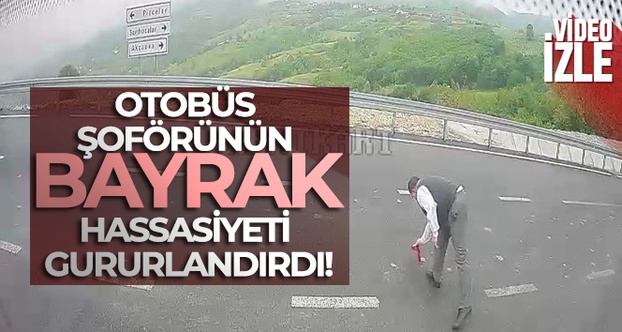 Kocaeli’de yerdeki Türk bayrağını fark edince belediye otobüsünü durdurarak alan şoför, izleyenlerin alkışını aldı.