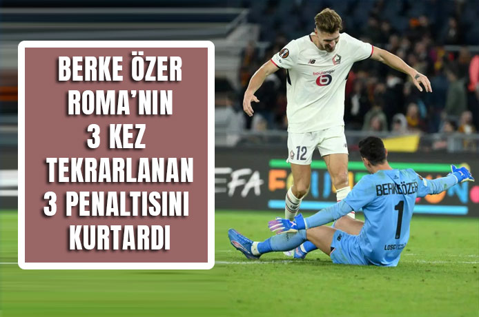 UEFA Avrupa Ligi'nde Roma ile Lille karşılaştı. Fransız ekibinin formasını giyen Berke Özer, 3 kez tekrar edilen penaltı vuruşunda 3 kez gole izin vermeyerek tarihe geçti.