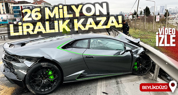 Beylikdüzü'de Rus bir iş adamı 26 milyon liralık Lamborghini marka aracıyla kaza yaparak bariyerlere vurdu. Araba kullanılamaz hale gelirken kazada yaralanan olmadı.
