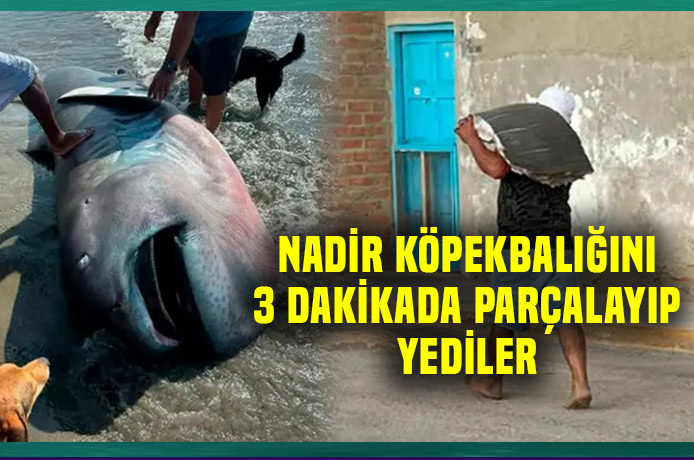 Buna rağmen sahildeki vatandaşların bilinçsizce etleri keserek hayvanı parçalaması büyük tepki topladı.