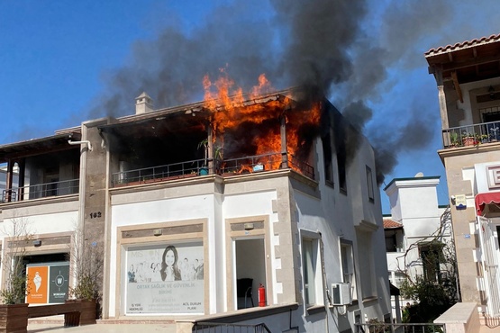Muğla’nın Bodrum ilçesinde çıkan yangında bir ev kullanılamaz hale geldi.