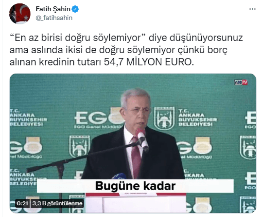 Fakat Mansur Yavaş borç alınan 57 milyon euroluk krediye hiç değinmedi. Yaptığı çıkışlarla ve hareketlerle gündemi meşgul etmekten öteye gidemeyen Kemal Kılıçdaroğlu ise Yavaş'ı yalanladı.