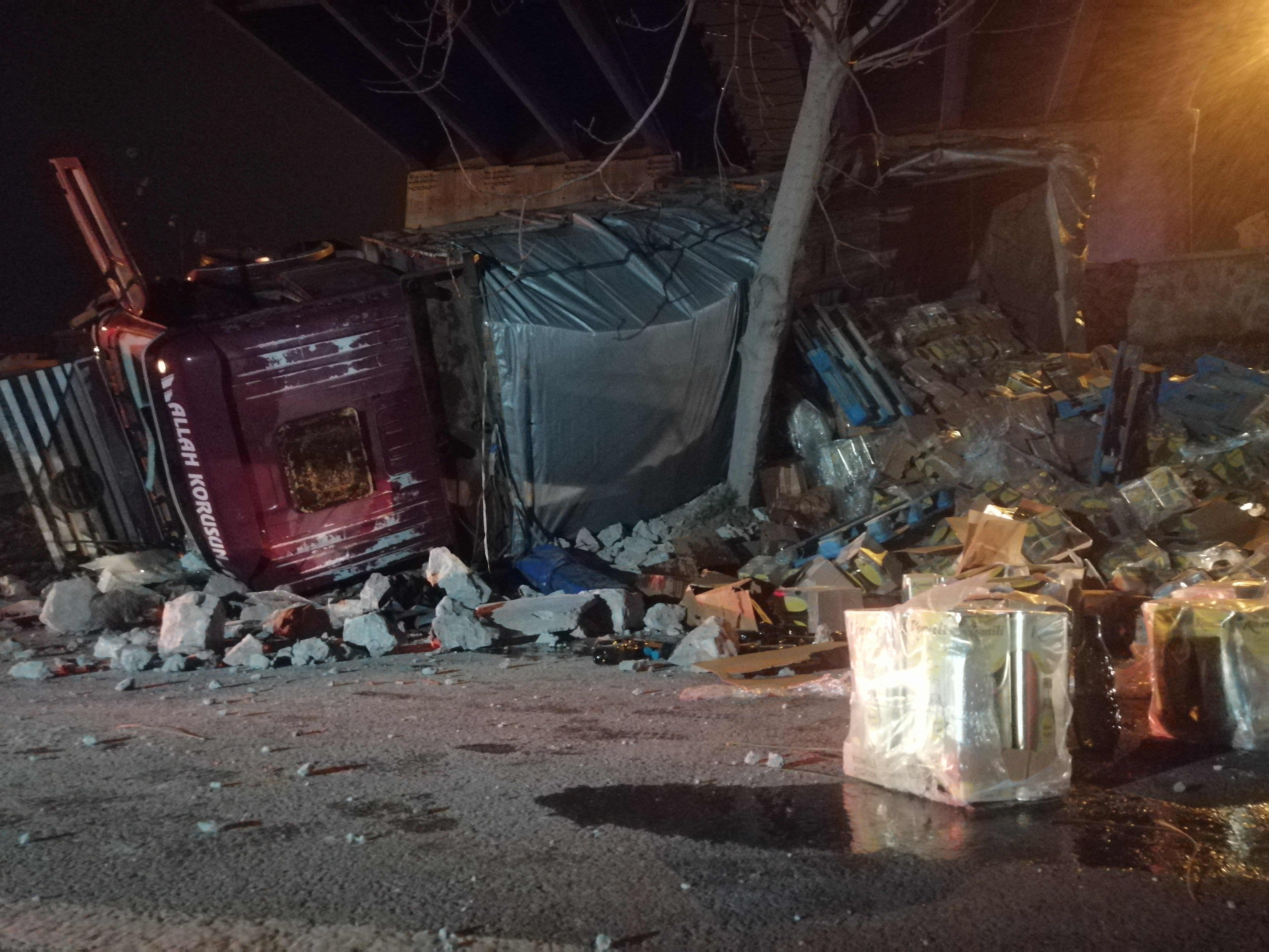 Bitkisel yağ yüklü kamyon şarampole yuvarlandı
