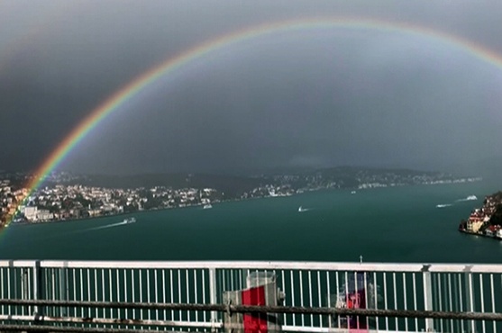İstanbul'da etkili olan yağmur sonrası gökkuşağı oluştu. Masmavi gökyüzünde renkleriyle adeta bir renk cümbüşü oluşturan gökkuşağı kameralara da yansıdı. İstanbul Boğazı'nı çevreleyen ve Taksim'den de görülen gökkuşağı, manzarasıyla görenleri hayran bıraktı.