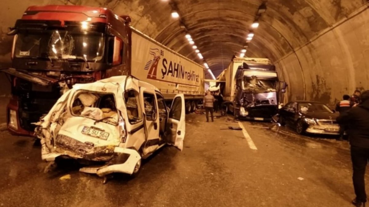 Bolu Dağı Tüneli'nde gerçekleşen zincirleme kazada 18 araç birbirine girdi.